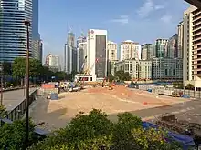 Ampang Park station is a metro station in Kuala Lumpur that is served by RapidKL's LRT Kelana Jaya Line and the newly-constructed MRT Putrajaya Line. The LRT station is the last underground station on the Kelana Jaya Line along Jalan Ampang, near the Jalan Tun Razak intersection. before the line heads above ground again at Damai LRT station, while the MRT station is situated on the former site of Ampang Park Shopping Centre as one of the three Putrajaya Line stations around KLCC.
