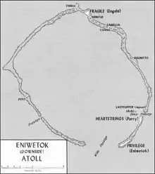 - Capt. James Jones, Commanding Officer, VAC AmphibReconCo., Action Report DOWNSIDE Operation, (Mar 18, 44), HistDiv, HQMC, 65A-5188, Box 2, Folder A20-l-VAC, ReconCo, ActRpt ENIWETOK, and 65A-5188, Box 10, folder TG-l-V MAC, Encl. D, SAR, ENIWETOK.