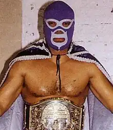 During his early days as Aníbal Mil Mascaras and Black Shadow acted as his padrinos or mentors. In 1966 Aníbal won the Distrito Federal Light Heavyweight Championship, then lost it to Pepe Casas as he signed a contract with Empresa Mexicana de Lucha Libre (EMLL).[3] He spent the next couple of years working his way up the ranks in EMLL, honing his high flying skills into a top level competitor. 1970 was Aníbal's breakthrough year. He defeated Mashio Koma to win the NWA World Middleweight Championship on December 6, 1970, and was named El Halcón Magazine's "1970 Wrestler of the year".[4][5] Aníbal's run with the NWA Middleweight title lasted over a year and saw him successfully defend the title in several high-profile main events. During his title reign Aníbal developed a heated rivalry with René Guajardo, a rivalry that saw the two face off in several main events all around Mexico.[1] On March 30, 1973, Guajardo ended Aníbal's NWA Middleweight title reign.[4] On June 28, 1974, Aníbal defeated Adorable Rubí to win the Mexican National Middleweight Championship in the main event of a show in Mexico City, Mexico.[6] On September 20, Aníbal became a double champion, defeating El Cobarde in a match for the vacant NWA World Middleweight Championship.[4] Aníbals run as a double champion ended when he lost the Mexican National Middleweight Title on November 29, 1974, to Ringo Mendoza.[6] His success in the ring saw him named "Wrestler of the year" in 1974.[5]