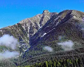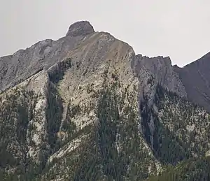 Anûkathâ Îpa (/ˌɑːnunˈkʌθɒ̃ imˈpə/ AH-noon-KUH-thə eem-PUH; Stoney Nakoda Anûkathâ Îpa[lower-alpha 1] IPA: [ˌanũ'kʰaθã ĩ'pʰa][5][6][lower-alpha 2], lit. transl. 'Bald Eagle Peak', sometimes written in English language sources as Anû Kathâ Îpa[7][lower-alpha 3]) is an outlier of Mount Charles Stewart in the Canadian Rockies of Alberta. It is one of the most prominent landmarks in the vicinity of Canmore, Alberta.