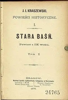 An Ancient Tale. Novel of Polish history (in Polish Stara baśń. Powieść z dziejów Polski) - is a historical novel by popular 19th-century Polish writer Józef Ignacy Kraszewski published by Gebethner i Wolff (Gebethner & Wolff Publishers) in 1876 in Warsaw, then part of the Russian Empire. This work was the first novel in Kraszewski's long series of historical novels dealing with various periods in Poland's history. The second edition was published in 1879, in a lavishly illustrated form, with the plates done by then popular illustrator Michał Elwiro Andriolli. The manuscript of the novel was destroyed during World War II.
