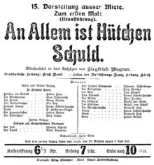 An allem ist Hütchen schuld! ('Hattie is to blame for everything!'), Op. 11, is an opera in German in three acts composed by Siegfried Wagner in 1914/15 to his own libretto. It is described as a Märchenspiel or fairy-tale play. It premiered on 6 December 1917 at the Ccourt Theatre Stuttgart.