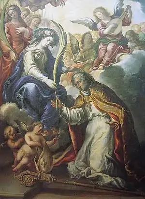 La Virgen entrega la palma a San Julián, Cuenca Cathedral, capilla del Sagrario.