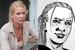 ![]() Andrea, as portrayed by Laurie Holden in the television series (left) and in the comic book series (right). | |