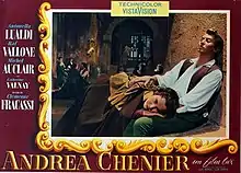 Andrea Chénier, also spelled Andrea Chenier, is a 1955 French-Italian historical musical melodrama film directed by Clemente Fracassi and starring Antonella Lualdi, Raf Vallone and Michel Auclair. It is loosely based on the eponymous 1896 opera by Umberto Giordano about the eighteenth century poet André Chénier.[1] The film's sets were designed by the art directors Flavio Mogherini and Franco Zeffirelli. It was shot using technicolor and vistavision.
