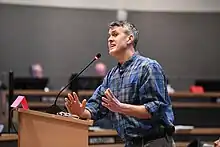 ![]() Andrew Gray testifying before the Anchorage Assembly in October 2021 | |