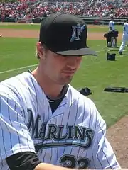 Miller made his MLB debut on August 30, 2006, at Yankee Stadium against the New York Yankees, pitching one scoreless inning and allowing one baserunner, Craig Wilson, on a hit by pitch.[19] In eight games, Miller posted a 0–1 record with a 6.10 ERA, walking ten batters in 9+1⁄3 innings, including seven of 16 left-handers faced. The Tigers advanced to the playoffs and did not include him on the roster.[20] They lost to the St. Louis Cardinals in the 2006 World Series.[21] Baseball America rated Miller's slider as the best in the Tigers organization and the franchise's second-best prospect overall.[22]