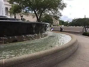 The Andrew W. Mellon Memorial Fountain is a bronze fountain sculpture by Sidney Waugh as a memorial to Andrew W. Mellon. It is located at the eastern tip of the Federal Triangle within the intersection of Pennsylvania Avenue, Constitution Avenue, and 6th Street NW in Washington D.C., United States. The fountain is across Constitution Avenue from the West Building of the National Gallery of Art.[1] The Department of the Interior maintains the fountain, which President Harry S. Truman dedicated on May 9, 1952.[1][2][3]