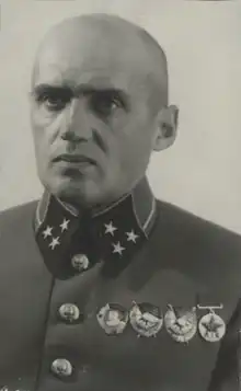 Andrey Kirillovich Smirnov (August 27, 1895, Saint Petersburg, Russian Empire – October 8, 1941, near the village of Popovka[2] (according to other sources, near the village of Alekseevka),[1] Zaporozhye Oblast) was a Soviet military commander, commander of the 18th Army, during Great Patriotic War, lieutenant general (June 4, 1940).