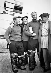 Tupolev (right) with the crew of the ANT-25 aircraft at the Shchyolkovo airfield in 1936. Photo by Mikhail Kalashnikov.
