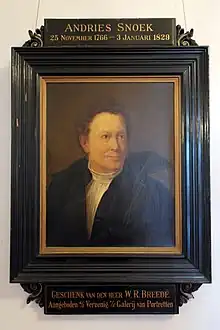 Andries Snoek (14 November 1766 - 3 January 1829) was a Dutch actor and director.[1] He was born in Rotterdam, the son of Jan Snoek and Helena de Ruyter, and the brother of actresses Anna Maria and Helena Snoek.[2] Despite his low birth, he became one of the most famous northern Dutch actors of his time.[3] In 1791 he joined the Nederduitse Acteurs of Ward Bingley. In response to the Batavian Revolution, Snoek left Rotterdam. Liesbeth Sparks calls him a “‘method actor’ avant la lettre”.[4]