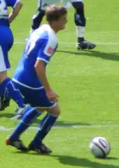 During pre-season, King believed the Leicester squad was good enough to challenge for promotion.[18] He scored his first goal of the season in a 1–0 win over Plymouth Argyle at the Walkers Stadium on 21 November 2009.[19] Following a fine start to the 2009–10 season, King said on 23 November there is a firm belief that the team can win promotion to the Premier League.[20] He drew praise from then-manager Nigel Pearson after scoring his fourth goal of the season in a 2–1 FA Cup win over Swansea City on 2 January 2010.[21] His overall performance earned him the players' player of the year award on 28 April 2010 which he shared with teammate Jack Hobbs.[22]