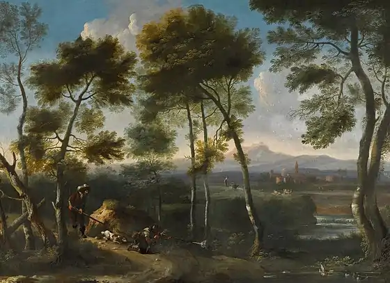 Giovanni Angelo (ca. 1620 - ca. 1650), better known as Angeluccio, was an Italian or Flemish landscape artist. A prominent pupil of Claude Lorrain, he remained active in Rome around 1645-1650 and was an eminent member of Bamboccianti, from which he acquainted and befriended fellow artist Michelangelo Cerquozzi with whom he often collaborated.[1] He is regarded as an artist of considerable talent and his works are often mistaken for his master's.[2]