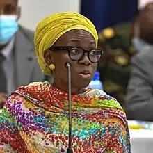 Gbeho is part of the leadership team in Somalia working under James Swan,[7] who was the target of an assassination attempt that killed others in 2019.[8] She spends some of her time travelling to different areas in Somalia to understand their needs, although security limits her freedom.[9] During a visit to Kismayo, the interim capital of Jubaland, in November 2021, she was given a security briefing at the airport before heading for the UN compound.[9] She met Jubaland President, Ahmed Mohamed Islam "Madobe", and was "very pleased" to hear that two seats were to be reserved for women in Somalia's upper house by the President.[9] This is in line with the objective of getting 30 per cent of the country's political representation to be by women.[9]