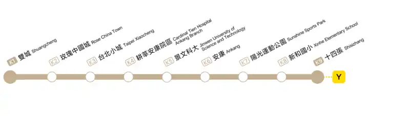 | K1 | Shuangcheng | 雙城 | Xindian, New Taipei | |