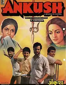 Ankush is a 1986 Hindi action drama film starring Nana Patekar, which was written, directed, edited and co-produced by N. Chandra. Made on a modest budget of ₹12 lakh, the film grossed ₹95 lakh.[1][2] It was remade in Kannada as Ravana Rajya and in Tamil as Kavithai Paada Neramillai.