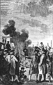 ![]() 18th-century illustration of Beddingfield being burned to death | |