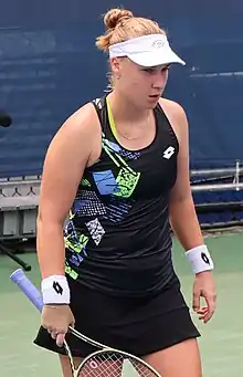 In August 2019, she reached her first WTA Tour quarterfinal in singles at the Bronx Open, where she lost to Wang Qiang.[8] At the 2019 US Open, she took defending champion and top seed Naomi Osaka to three sets.[12] She followed this with title in New Haven on the WTA Challenger Tour.[13] Nearly after that, she reached the semifinal of the Guangzhou Open, but then lost to Sofia Kenin.[14] In October, she reached another semifinal at the Luxembourg Open, but lost to later champion Jeļena Ostapenko.[15] During the year, she did even better in doubles. In February 2019, she won the Hua Hin Championships, alongside Wang Yafan. After that, she reached semifinals of the Hungarian Open. In April, she reached another semifinal at the Premier-level Stuttgart Open.[8] She then won $60k, $80k and $100k events, respectively, on the ITF Circuit.[6] In September, she won the WTA Challenger New Haven.[13]
