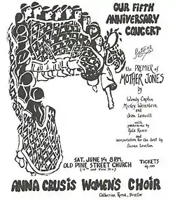 - June 12, 2010, "35 years of singing for social justice," artistic director Jacqueline Coren, with guest conductors Catherine Roma and Jane Hulting.[5][50]