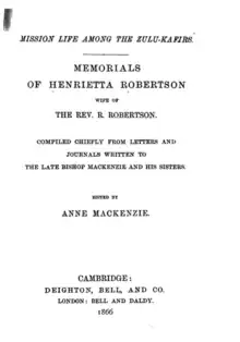 - Mission Life among the Zulu-Kafirs. Memorials of Henrietta Robertson ... Compiled chiefly from letters and journals written to the late Bishop Mackenzie and his sisters. Edited by Anne Mackenzie. With a map, etc., 1866