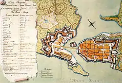 The construction was started by Peter the Great in 1720, after Russia had successfully finished the Siege of Vyborg and captured the town from Sweden in the Great Northern War. The fortification was completed by Anna of Russia in 1741.[1] The project was under the direction of the German-born soldier-engineer Burkhard Christoph von Münnich.[2]