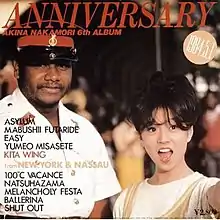 Anniversary is the fifth studio album by Japanese singer Akina Nakamori. It was released on 1 May 1984 under the Warner Pioneer label. It was released on her second debut anniversary. The album includes the hit singles "Kita Wing" and first song written by Akina herself, Yume wo Misasete.