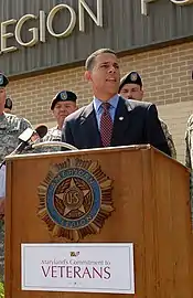 Brown was the nation's highest-ranking elected official to have served a tour of military duty in Iraq[7][8] and he led the O'Malley-Brown Administration's work to improve benefits and services for Maryland's veterans.