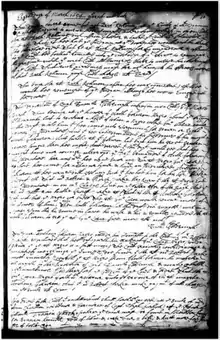 In 1657, Johnson's neighbor, Edmund Scarborough, allegedly forged a letter in which Johnson acknowledged a debt, whether this debt was real or not is unknown. Johnson did not contest the case. Johnson was illiterate and could not have written the letter; nevertheless, the court awarded Scarborough 100 acres (40 ha) of Johnson's land to pay off his alleged "debt".[10]