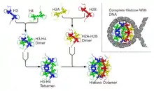 Anti-histone antibodies target five major classes of histone protein subunits: H1, H2A, H2B, H3, and H4.[6] Anti-histone antibodies are diverse, so aside from targeting the protein subunits, different antibodies may also be specific for different complexes, including the H2A-H2B dimer or the H3-H4 tetramer. There is evidence that IgG and IgM anti-histone antibodies produced as a result of different drug exposures are specific to epitopes of different histone complexes.[7] Highly modified histones have been shown to prompt a greater immune response.[8]