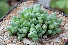 The species of this varied genus typically grow as dense cushions or mats. Otherwise, Antimima species are very similar in their superficial looks to the related genus Ruschia, with 3-sided waxy succulent leaves, and pink or white flowers.[2]