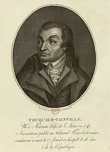 Antoine Quentin Fouquier de Tinville (French pronunciation: [ɑ̃twan kɑ̃tɛ̃ fukje tɛ̃vil], 10 June 1746 – 7 May 1795), also called Fouquier-Tinville and nicknamed posthumously the Provider of the Guillotine[1] was a French lawyer and the public prosecutor of the Revolutionary Tribunal during the French Revolution and Reign of Terror.