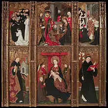 Antoine de Lonhy, Altarpiece of the Virgin, Saint Augustine and Saint Nicholas of Tolentino, currently in the Museu Nacional d'Art de Catalunya, Barcelona