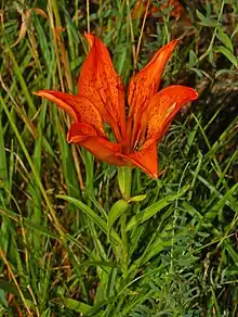 Lilium bulbiferum var. croceum, flowering in July