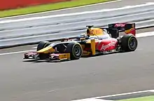 Giovinazzi went eight races without scoring points until he scored his first at the Austrian Grand Prix, finishing 10th.[34] It was the first points finish for an Italian driver in Formula One since Vitantonio Liuzzi finished sixth at the 2010 Korean Grand Prix. The next race in Britain saw his first retirement of the season, after a mechanical problem caused him to spin out into a gravel trap.[35] He crashed out on the last lap of the Belgian Grand Prix, having been running in ninth place. It later emerged that the crash caused Alfa Romeo to consider Giovinazzi's future with the team, with team principal Frédéric Vasseur saying "We had a tough discussion with Antonio, because these kind of things can decide your career. We were thinking about the future."[36] At this stage of the season, Giovinazzi had collected one point, whilst teammate Räikkönen had scored 31.