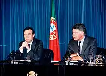 Guterres served as secretary-general of the Socialist Party from 1992 to 2002. He was elected prime minister in 1995 and announced his resignation in 2002, after his party was defeated in the 2001 Portuguese local elections. After six years governing without an absolute majority and with a poor economy, the Socialist Party did worse than expected because of losses in Lisbon and Porto, where polls indicated they had a solid lead. Eduardo Ferro Rodrigues assumed the Socialist Party leadership in January 2002, but Guterres would remain as prime minister until the general election was lost to the Social Democratic Party, led by José Manuel Barroso. Despite this defeat, polling of the Portuguese public in both 2012 and 2014 ranked Guterres the best prime minister of the previous 30 years.[2][3]