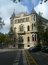 Pérez de Olaguer's ancestors lived mostly overseas and seemed detached from daily Spanish politics; the only information on their preferences available[97] is that his father was a fervent Catholic.[98] The young Antonio initially did not reveal any penchant; it is only in the early 1930s that his writings got saturated with Traditionalism. Exact mechanism of his access to Carlism is not known,[99] yet in 1933 it seemed apparent,[100] perhaps confirmed in 1934.[101] His writings and publications aside[102] there is no confirmation of his engagement in Carlist structures. It is not clear whether Antonio joined requeté military gear-up and whether on July 19 he engaged in the coup.[103] In the mayhem that followed he left Barcelona for Genoa.[104] He entered the Nationalist zone some time before November 1936 and offered his services to Junta Nacional Carlista de Guerra; Pérez de Olaguer was seconded to its Prensa y Propaganda section, touring the area controlled and gathering information on the fallen requetés.[105] He also kept advancing the Carlist cause in numerous books and press publications. His position versus the Unification Decree and buildup of the Francoist regime is not clear; after 1937 his activity as author declined sharply, yet in 1939 Franco watched the victory parade in Barcelona from the balcony of Casa Pérez Samanillo.[106]