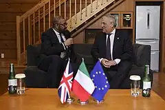 Antonio Tajani (Italian pronunciation: [anˈtɔːnjo taˈjaːni]; born 4 August 1953) is an Italian politician, journalist and former Italian Air Force officer, who has served as Deputy Prime Minister of Italy and Minister of Foreign Affairs since 22 October 2022. He served as President of the European Parliament from 2017 to 2019, as European Commissioner from 2008 to 2014, and also as a member of the European Parliament from 1994 to 2008 and again from 2014 to 2022 until he was elected to Italy's Chamber of Deputies.