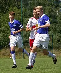 Evans joined the Everton academy at the age of nine after previously training with Liverpool.[3] He signed a professional contract with the Toffees in October 2015.[4] In January 2017 Evans joined League Two side Morecambe on loan for the rest of the 2016–17 season.[5] He made his professional debut on 4 February 2017 in a 1–1 draw away at Doncaster Rovers.[6]