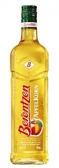 Apfelkorn is a sweet apple-flavored liqueur made from 100% wheat spirit, and blended with apples. It was invented in Germany in the 1970s.