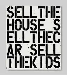 Apocalypse Now is a 1988 painting by the American artist Christopher Wool, widely regarded as among the most important of his "word paintings" created in the late 1980s.[1][2][3] It consists of the words "SELL THE HOUSE SELL THE CAR SELL THE KIDS", stenciled in black, block letters in alkyd enamel[4][5] on an off-white painted aluminum and steel plate measuring 84 x 72 inches (213.4 x 182.9 cm).[4] The quotation is from the 1979 Francis Ford Coppola movie Apocalypse Now, where it is written in a letter mailed home by a character who has lost his mind in the jungle.[1][lower-alpha 1]