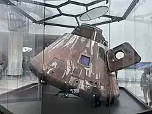 A display at the National Air and Space Museum in Washington, D.C. shows the docked Apollo/Soyuz configuration. The display is made up of Apollo Command and Service Module 105 (used for vibration testing for the Skylab program), the back-up Docking Module, and a model of the Soyuz spacecraft. An identical Soyuz model is exhibited at the Kennedy Space Center Visitor Complex. A full-size mockup of the two docked spacecraft is at the Cosmosphere in Hutchinson, Kansas.
