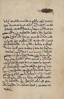 The oldest manuscript of the Arabic Sibylline prophecy is fragmentary: a single folio from Sinai, Monastery of Saint Catherine, MS Ar. 461, dating to the 9th or 10th century. Another manuscript from Sinai (Ar. NF pap. 34) is dated to 1002.[6] All other manuscripts date to the 15th century or later.[7] There are copies of the prophecy written in Garshuni, that is, Arabic in the Syriac script.[8][9]