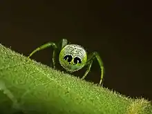 Araneus praesignis[1] is a species of orb-weaving spider found in Queensland, Australia where it is widespread and common in well-vegetated areas. The Atlas of Living Australia[2] shows a record from New South Wales. It has bold black blobs on its rear, perhaps mimicking eyes. In 2014 Carly Brooke Martinetti gave it the common name "Alien Butt Spider"[3] by which it became internationally known.[4][5][6][7] Due to its memorable common name and strange appearance photographs of the spider have appeared in many online blogs and galleries.[8][9][10][11][12] The purported 2015 sighting from China [13] is of a different species of orb weaver because it has a different pattern of dark patches on the back and the photo does not show the actual alien eyes from which the common name is derived.