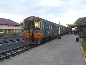 There is a rail connection service to the Cambodian border city of Poipet. First opened in 1955, this service has seen closures between 1961–1970 and 1974–2019 due to neglect and poor diplomatic relations, but is back in operation as of April 2019.[1] Later, it was closed again due to the COVID-19 pandemic.[2]
