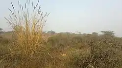 In 2010, a group of concerned and passionate citizens called 'iamgurgaon',[7] consisting of Latika Thukral,[8] Swanzal Kak Kapoor, Atal Kapoor, Gayatri Singh and the Late Atal Kapoor took up the initiative of ecological restoration of the Aravali Biodiversity Park, Gurgaon. They hired ecological restoration practitioner Vijay Dhasmana [9] to restore the damaged landscape in 2011. Thereafter the vision was revised to bring back the original Aravali forest vegetation of the region. Seedlings of about 200 native plant species were raised from seeds collected from remnant natural forests and vegetated areas in Mangar, Nahargarh, and Kumbhalgarh in the Aravalli Range. Invasive alien species such as Prosopis juliflora were carefully removed and native plants of the Aravalli Range were planted. These included native species such as Boswellia serrata (local name: salai), Sterculia urens (kullu), Anogeissus pendula (dhau), Holarhenna pubescens (indrajao), Mitragyna parvifolia (kaim), Wrightia tinctoria (khirni), Commiphora wightii (guggul), Helicteris isora (marodphali), Albizia odorotissima (kala basa), Mallotus philippensis (sinduri) and many others. A large part of seedlings planted were watered through drip irrigation. The Park also maintains a variety of habitats including grasslands and a seasonal pond near an old quarry site.[4]