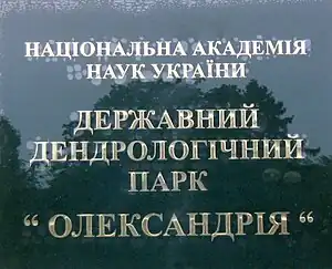 The Arboretum Oleksandriya (Ukrainian: Державний дендрологічний парк «Олександрія») is an arboretum located in the city of Bila Tserkva of the Kyiv Oblast of Ukraine. It holds the state arboretum of the National Academy of Sciences of Ukraine. It is a monument of landscape art, founded in the late 18th century. It is one of the largest parks in Eastern Europe, second largest in Ukraine.