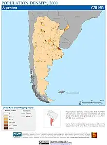 The earliest traces of human life in the area now known as Argentina are dated from the Paleolithic period, with further traces in the Mesolithic and Neolithic.[14] Until the period of European colonization, Argentina was relatively sparsely populated by a wide number of diverse cultures with different social organizations,[42] which can be divided into three main groups.[43]