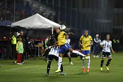 The Brazil–Argentina football rivalry is a sports rivalry between the national football teams of the two countries and their respective sets of fans.[3] Games between the two teams are often marked by notable and controversial incidents. The rivalry has also been referred to as the Battle of the Americas or the Superclassic of the Americas (Spanish: Superclásico de las Américas; Portuguese: Superclássico das Américas). FIFA has described it as the "essence of football rivalry".[4] CNN ranked it second on their top 10 list of international football rivalries—only below the older England–Scotland football rivalry.[5]