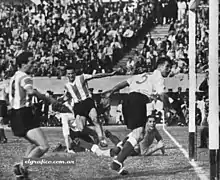 The national teams had met before their 1966 clash – Argentina were the first team other than Scotland to play England at Wembley Stadium in 1951 when the inaugural full international match between the sides ended with a 2–1 victory for England.[9] They also played two matches in 1953 in Buenos Aires. The first, a 3–1 victory for Argentina, was considered an unofficial international by England, who fielded a second-string team dubbed an FA XI. Although this match appears in some records citing Argentina's list of official internationals,[10] it is not listed as a full international by either the AFA[9] or FIFA.[11] Nevertheless, the Argentines consider it to be their first ever victory over England.[12] Afterwards, one Argentine politician stated that "we nationalised the railways, and now we have nationalised football!"[13]