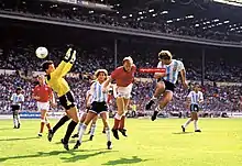 ![]() Diego Maradona celebrating his second goal (considered "the best goal in World Cup history") during the 1986 FIFA World Cup. | |